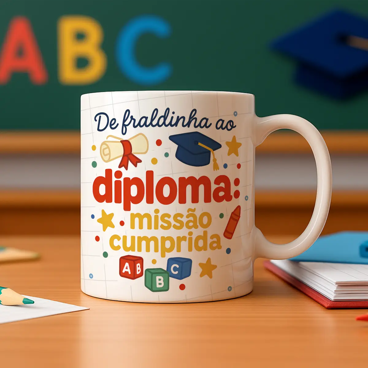 Todo o material foi criado em alta resolução, garantindo impressões nítidas e um acabamento impecável em canecas de cerâmica e outros produtos sublimáveis. Além disso, o pacote acompanha versões em CDR e PNG, permitindo personalização e edição conforme sua necessidade, com total flexibilidade para adaptações de nome, turma, escola e cores.