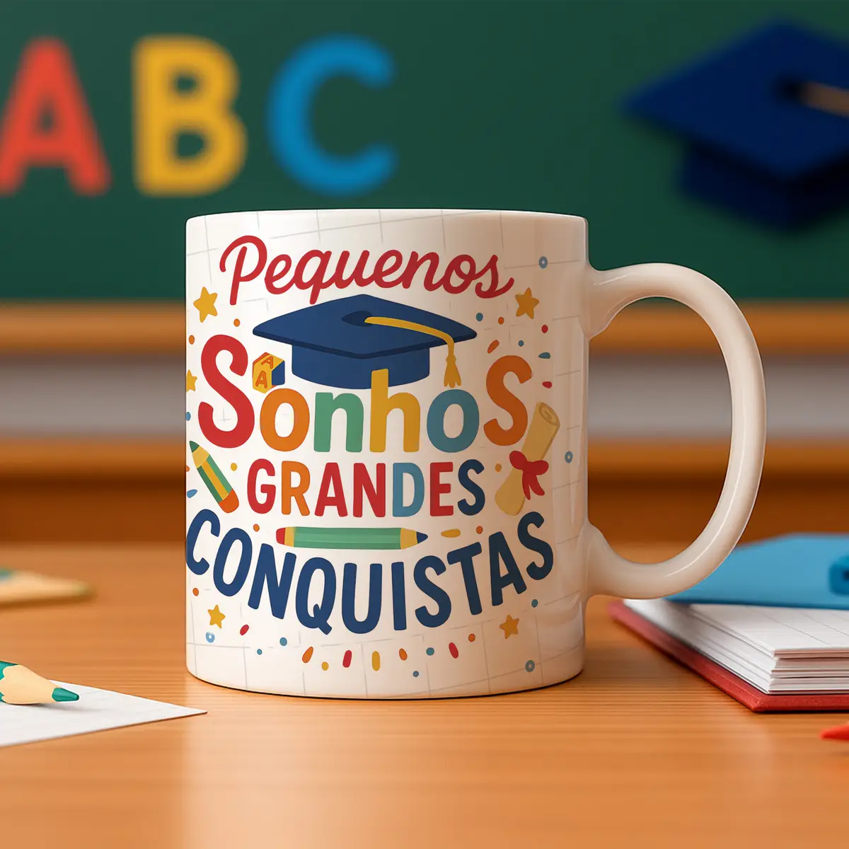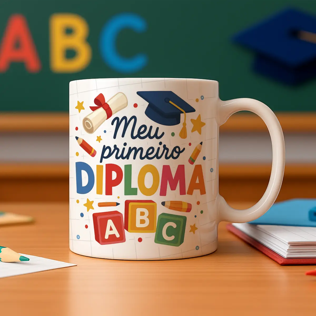 O pack Artes Caneca Formatura ABC 2.0 foi desenvolvido especialmente para quem trabalha com sublimação e deseja oferecer canecas temáticas de formatura infantil com qualidade profissional. As artes possuem visual moderno, cores vibrantes e elementos encantadores que combinam perfeitamente com a temática escolar. São ideais para montar lembranças personalizadas, kits de formatura, brindes para escolas, presentes para crianças e produções para vendas em datas de encerramento letivo.