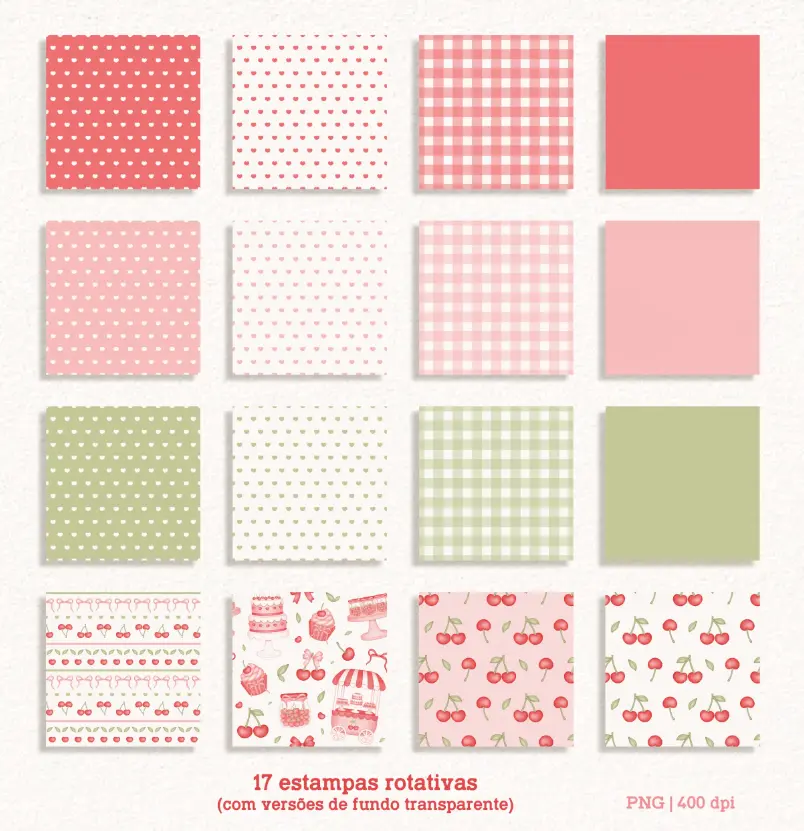 Inspire-se com o encanto delicado das cerejas em aquarela, capturadas em elementos graciosos que trazem frescor e charme aos seus projetos criativos. Este conjunto oferece uma seleção cuidadosamente elaborada para enriquecer trabalhos manuais e composições visuais.