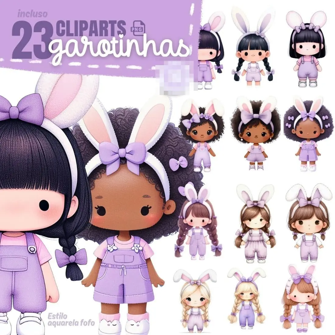 Ideal para complementar seus trabalhos criativos, este pacote oferece versatilidade e qualidade para diversas aplicações. As ilustrações apresentam traços encantadores e variados, com definição nítida para garantir excelência em seus projetos.