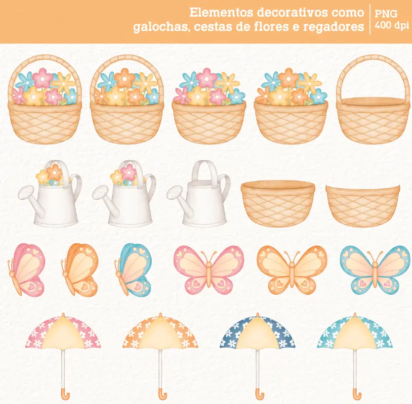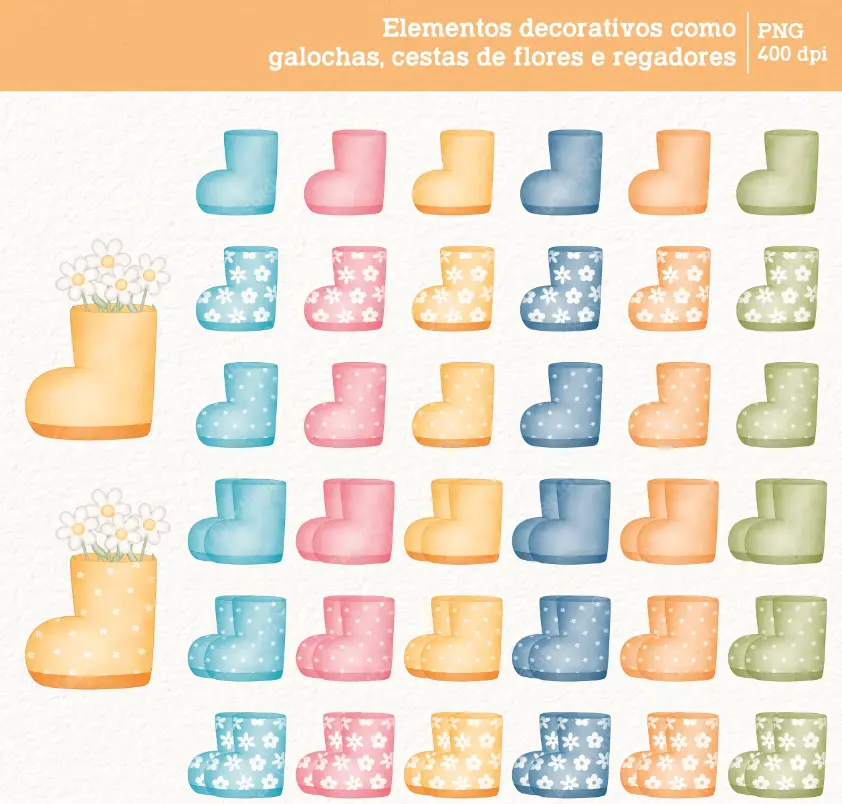 Transforme seus projetos com ilustrações delicadas em aquarela que trazem charme e sofisticação. Este kit é ideal para quem busca elementos visuais únicos e de alta qualidade, prontos para elevar qualquer criação.