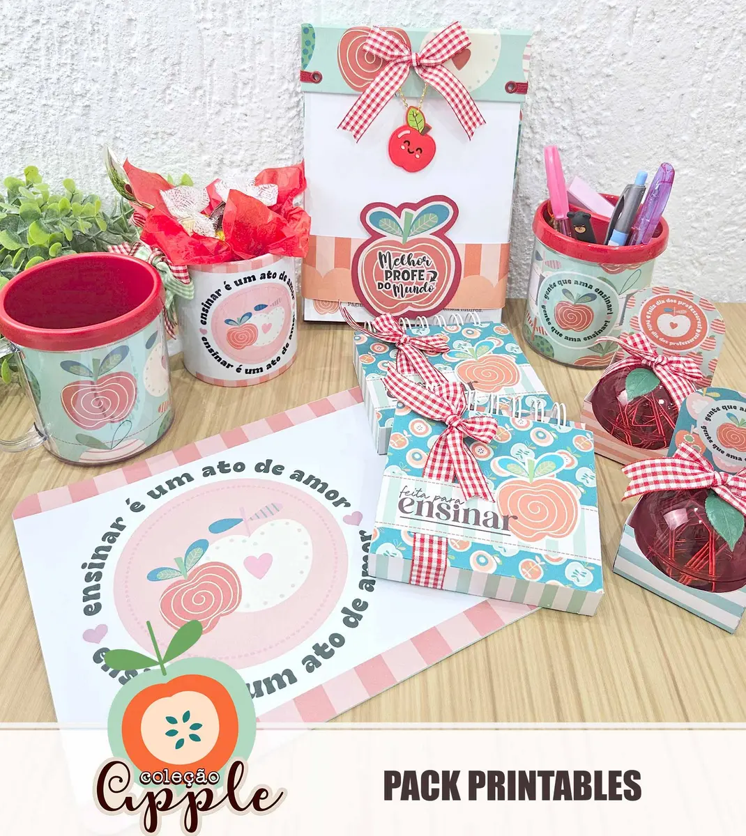 Celebre o Dia do Professor com este encantador conjunto inspirado em maçãs! ✨ Perfeito para presentear educadores ou decorar seu espaço de trabalho com carinho e criatividade.
