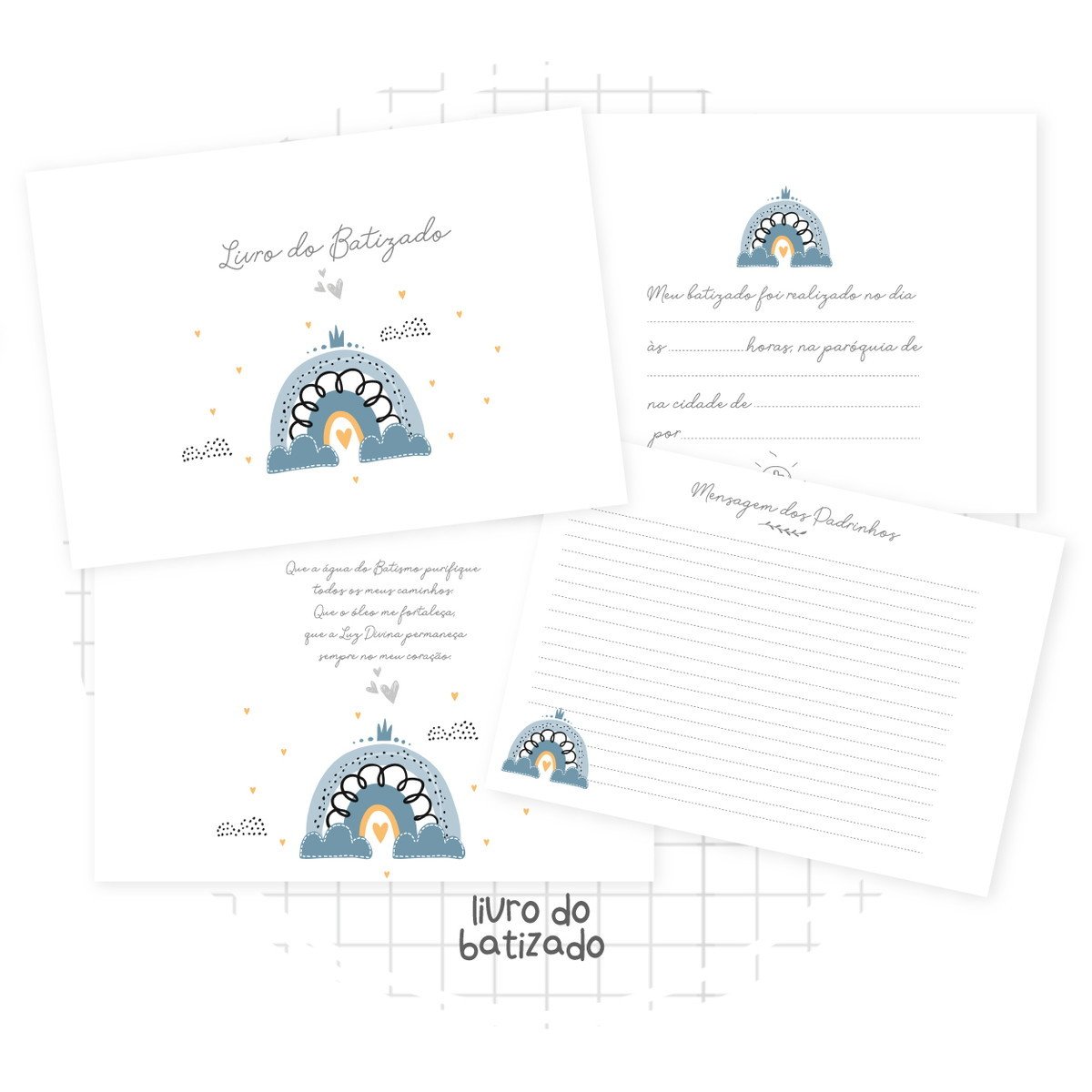 – Miolo (espaço para fotos e mensagens pais, amigos..) – Formato: Png e Pdf 80 páginas