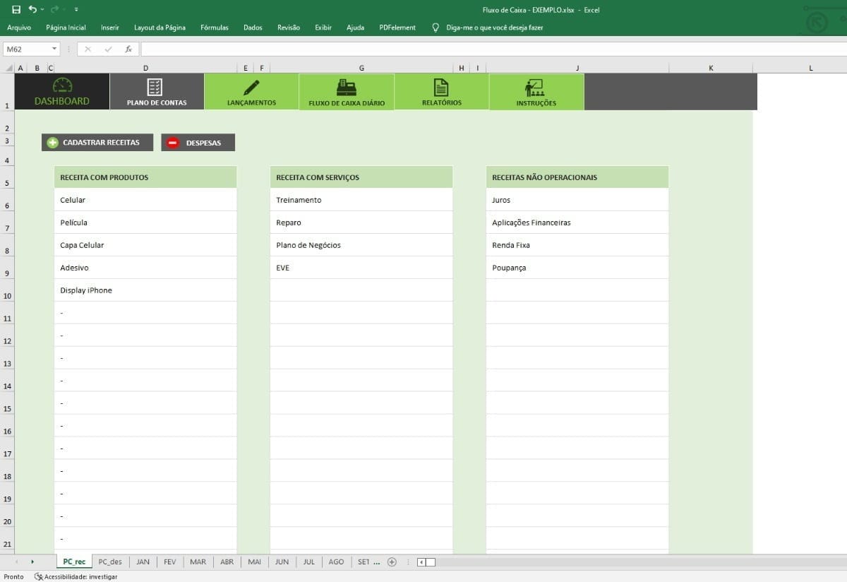 * Controlar entradas e saídas de caixa, bem como resultados realizados e previstos de cada mês